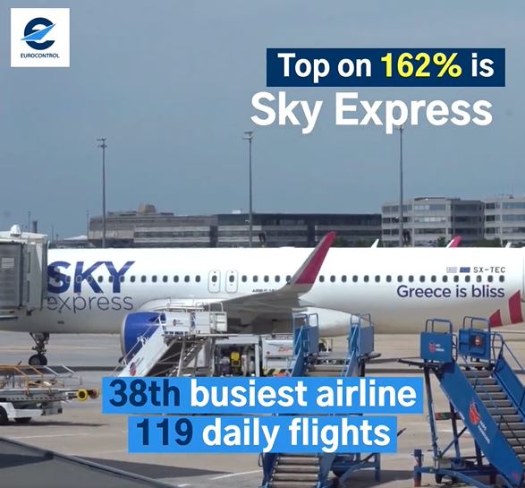 Ως η ευρωπαϊκή εταιρεία με τη μεγαλύτερη αύξηση σε επίπεδο πτητικού έργου για το 2022 αναδεικνύεται η SKY express σύμφωνα με τα στοιχεία του Eurocontrol.