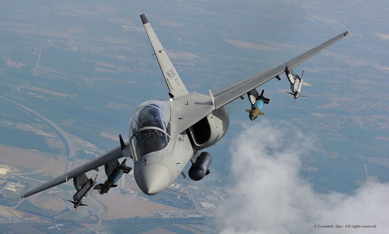 Το εκπαιδευτικό Μ-346, το οποίο ακόμη δεν φέρει εξωτερικά την τελική του μορφή, πέταξε από το αεροδρόμιο Caselle στο πλαίσιο δοκιμών της κατασκευάστριας εταιρείας Leonardo.