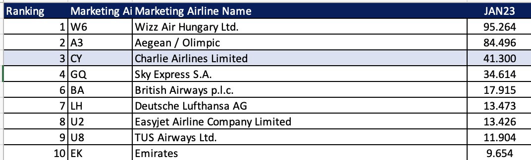 “Ο Φεβρουάριος είναι παραδοσιακά ο πιο ήσυχος μήνας μας, αλλά σε σύγκριση με πέρυσι, μεταφέραμε πέντε φορές περισσότερους επιβάτες. Μήνα με το μήνα επιτυγχάνουμε ενθαρρυντικά αποτελέσματα και έχουμε επιβεβαιώσει τη θέση μας ως ο τρίτος μεγαλύτερος αερομεταφορέας με βάση το μερίδιο αγοράς στην Κύπρο για τον Ιανουάριο του 2023 πίσω από τη WizzAir και την Aegean που έχουν σημαντικά μεγαλύτερους στόλους με έδρα τη Λάρνακα”, δήλωσε ο Paul Sies, Διευθύνων Σύμβουλος της αεροπορικής εταιρείας.