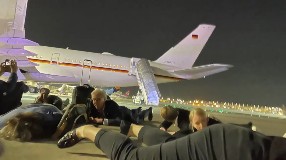 Όπως μεταδίδει η Welt στην αποστολή βρίσκονταν και δημοσιογράφοι οι οποίοι αναγκάστηκαν να ξαπλώσουν στην πίστα.