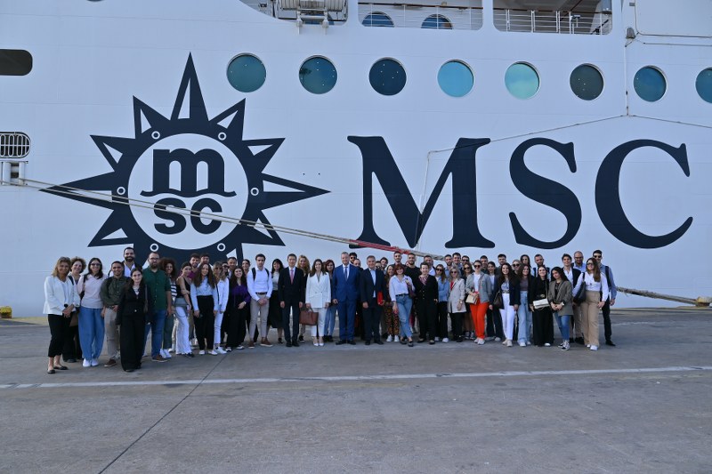 Με οικοδεσπότες την Διευθύντρια Ανατολικής Μεσογείου της CLIA, κα Μαρία Δεληγιάννη και την Αντιπρόεδρο Βιωσιμότητας & ESG της MSC Cruises, κα Linden Coppell, και με την τιμητική παρουσία του Προέδρου του Οργανισμού Λιμένος Πειραιώς κ. Yu Zenggang, οι φοιτητές των Προγραμμάτων MSc in Shipping Management and MSc in Ports and Coastal Economy του Πανεπιστημίου Πειραιώς ξεναγήθηκαν στους χώρους του MSC Splendida προκειμένου να γνωρίσουν από κοντά τι είναι η κρουαζιέρα. Τους φοιτητές συνόδευαν οι Καθηγητές του Τμήματος Ναυτιλιακών Σπουδών του Πανεπιστημίου Πειραιώς, κ.κ. Θάνος Πάλλης και Άγγελος Παντουβάκης.