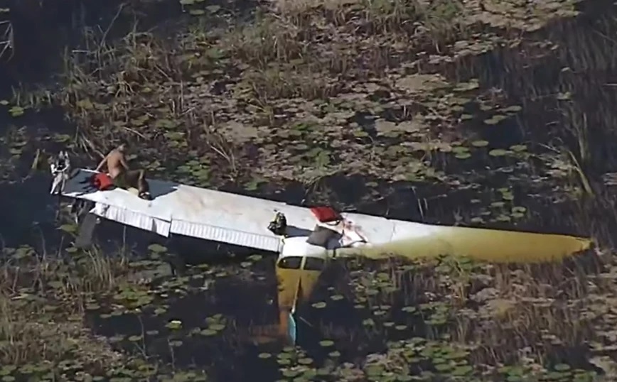 Το βίντεο που ανάρτησε η πυροσβεστική διάσωση του Miami-Dade δείχνει τον άνδρα να κάθεται στο φτερό του αεροπλάνου, ενώ περίμενε να διασωθεί, πριν έρθει προς βοήθειά του ένα ελικόπτερο.