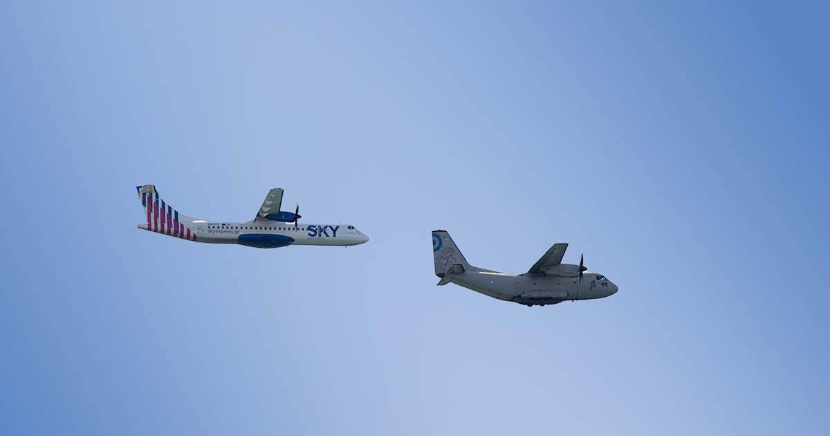 Δύο υπερσύγχρονα αεροσκάφη της SKY express AIRBUS A320neo & ATR 72-600 δίπλα σε C-27, F-16 & Mirage 2000-5
