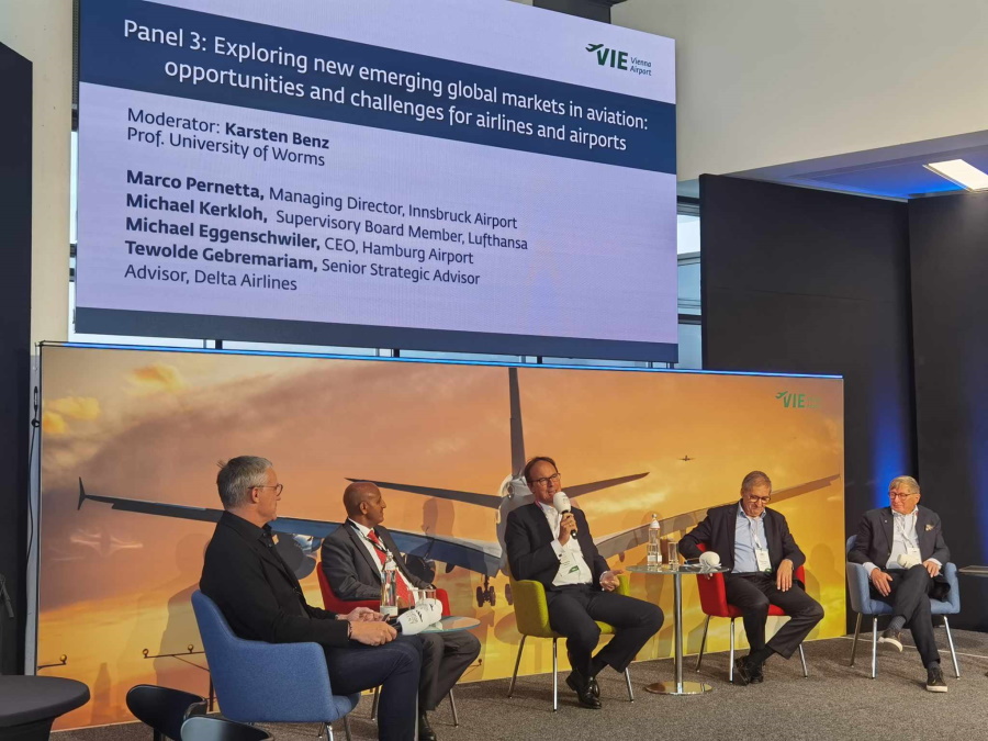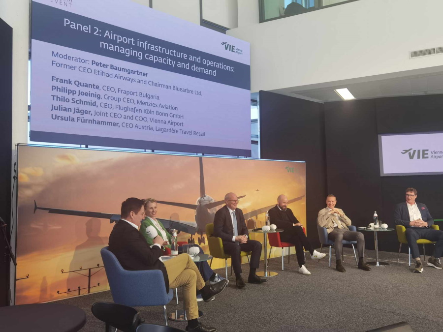 Στη συνέχεια, στο δεύτερο πάνελ με θέμα ”Airport Infrastructure and operations: managing capacity and demand” ο συντονιστής Peter Baumgartner (Former CEO Etihad Airways and Chairman Bluearbre) καλωσόρισε την Ursula Furnhammer, CEO Austria, Lagardere tRAVEL Retail, τον Julian Jager, Joint CEO και COO του αεροδρομίου της Βιέννης, τον Frank Quante, CEO Fraport Boulgaria, τον Thilo Schmid CEO Flughafen Koln Bonn και τον Philipp Joenig, Group CEO Menzies Aviation. Μίλησαν, μεταξύ άλλων, για την έντονη επιθυμία των Ευρωπαίων να ταξιδεύουν, τις προκλήσεις που πρέπει να αντιμετωπίσουν αεροπορικές εταιρείες και αεροδρόμια και τη συνεργασία που πρέπει να έχουν όλοι μαζί για να τα καταφέρουν.