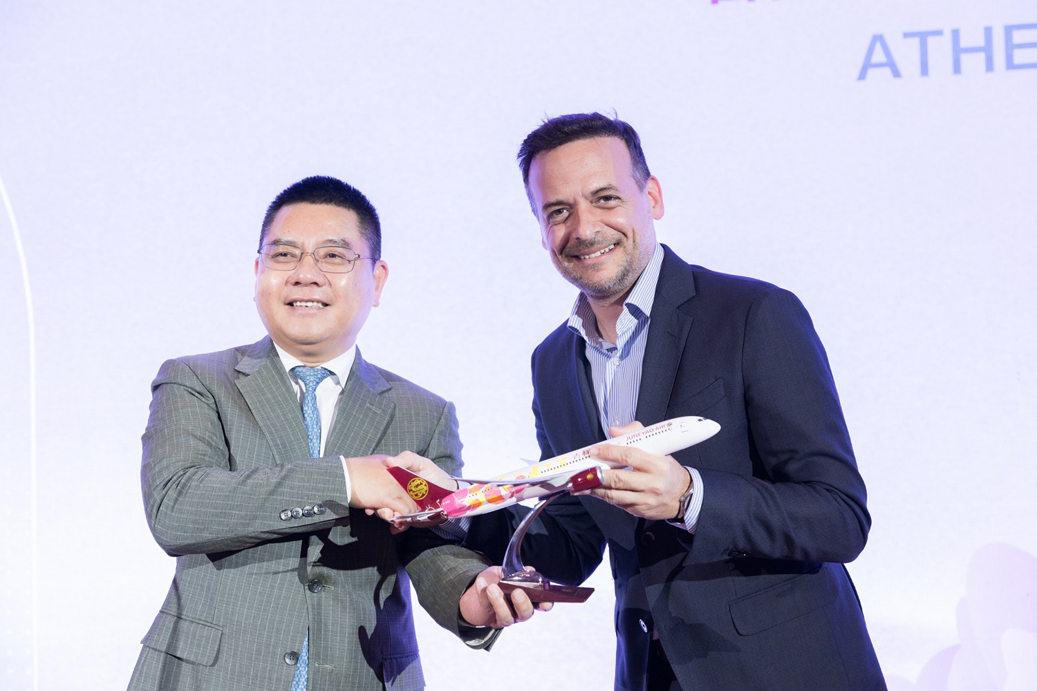 Με αφορμή την άφιξη της πτήσης στο αεροδρόμιο της Αθήνας στις 2 Απριλίου, πραγματοποιήθηκε εκδήλωση στο ξενοδοχείο «Μεγάλη Βρετανία», την οποία διοργάνωσε η αεροπορική εταιρεία της Σαγκάης Juneyao, το Διεθνές Αεροδρόμιο Αθηνών και ο ταξιδιωτικός οργανισμός My Odyssey.