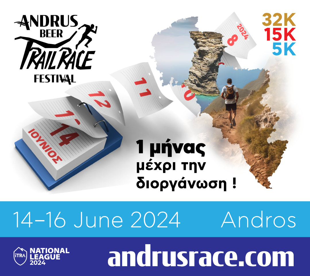 Ένας μόνο μήνας έμεινε για να είμαστε όλοι μαζί στο μεγαλύτερο αθλητικό φεστιβάλ της Άνδρου και να απολαύσουμε τις κρυφές ομορφιές του νησιού μέσα από τις 4 διαδρομές του Andrus Beer Trail Race Festival.