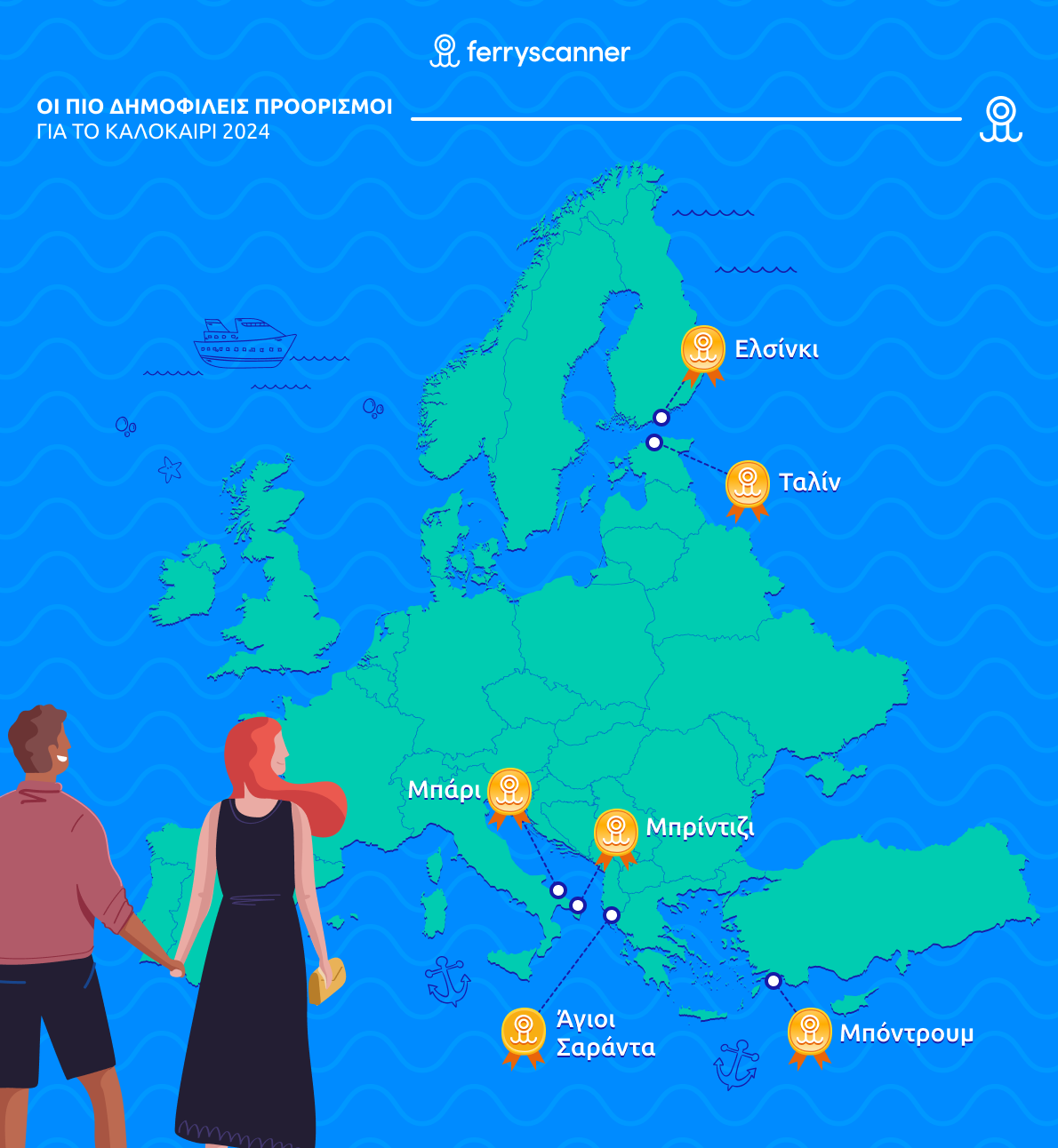 Επιπλέον, η Ferryscanner σημείωσε μια εντυπωσιακή αύξηση στη ζήτηση για ευρωπαϊκούς ακτοπλοϊκούς προορισμούς κατά τη διάρκεια του καλοκαιριού του 2024. Οι ταξιδιώτες ανακάλυψαν νέους και συναρπαστικούς προορισμούς, με το Ελσίνκι, το Ταλίν, το Μπόντρουμ, το Μπάρι, τους Άγιους Σαράντα και το Μπρίντιζι να ξεχωρίζουν ως οι πιο δημοφιλείς επιλογές. Αυτή η τάση υπογραμμίζει την αυξανόμενη προτίμηση για μοναδικές και αναδυόμενες θαλάσσιες εμπειρίες, επιβεβαιώνοντας την επιθυμία των επιβατών για ποικιλία και ανακάλυψη νέων προορισμών.