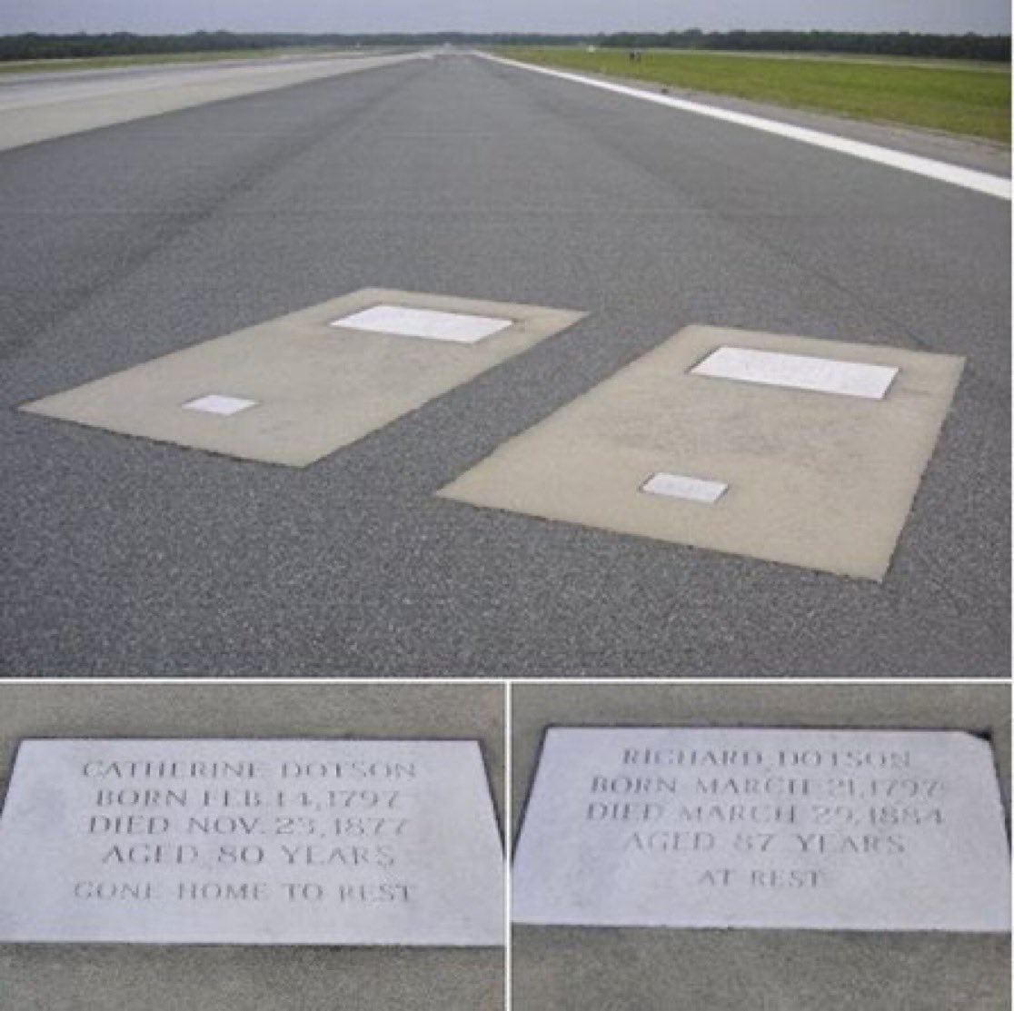 Αν ποτέ βρεθείτε στο αεροδρόμιο Savannah/Hilton Head στη Τζόρτζια των ΗΠΑ, τότε σίγουρα το αεροπλάνο σας έχει περάσει επάνω από δύο συγκεκριμένους τάφους, συγκεκριμένα στην άκρη των διαδρόμων 10 και 28. Πρόκειται για δύο τάφους ενσωματωμένους στο έδαφος και ανήκουν στο ζευγάρι Catherine και Richard Dotson, οι οποίοι γεννήθηκαν το 1779. Η Catherine πέθανε το 1877 και ο Richard το 1884.