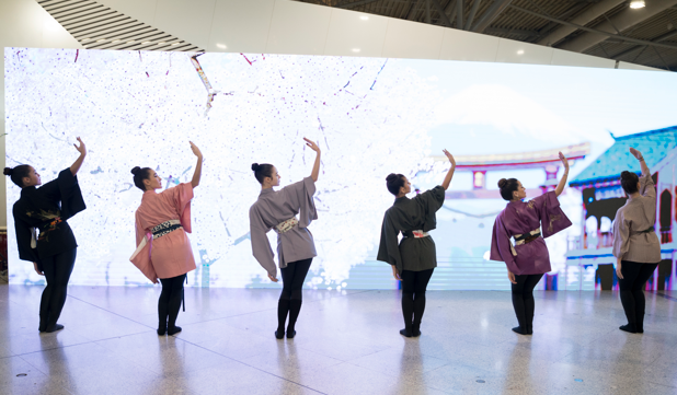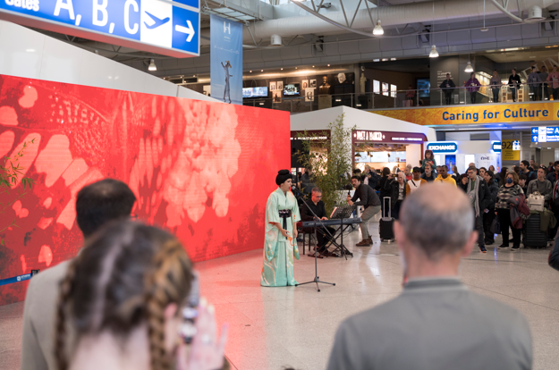 Μια εκρηκτική, και απόλυτα συντονισμένη κινησιολογικά, είσοδος με παραδοσιακά κρουστά Taiko, ήχοι από φλάουτο, μια εντυπωσιακή χορογραφία με κιμονό, στοιχεία hip-hop, αλλά και ένα οπερατικό απόσπασμα από την Madama Butterfly, έφεραν στο χώρο των αναχωρήσεων του αεροδρομίου τη μυστηριώδη γοητεία της της Χώρας του Ανατέλλοντος Ηλίου. Τη μαγεία της Ιαπωνίας «ζωντάνεψαν» επίσης στο αεροδρόμιο ανθοδεσίες ikebana και μια επίδειξη κατασκευής origami, ενώ σε γιγαντιαία οθόνη εναλλάσσονταν στίχοι χαϊκού. Ταξιδιώτες και επισκέπτες περπάτησαν στους δρόμους του Τόκιο μέσω VR, φωτογραφήθηκαν με σπαθιά και κιμονό μπροστά στο photobooth, συμμετείχαν σε ένα διασκεδαστικό quiz και γεύθηκαν εδέσματα και αφεψήματα της ιαπωνικής κουζίνας.