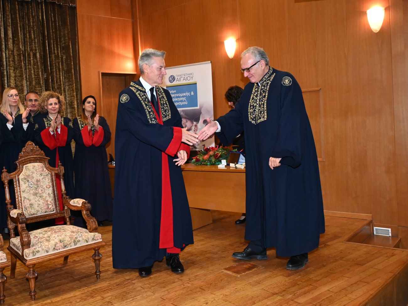 Την Παρασκευή 13 Δεκεμβρίου και ώρα 12:00 στο πλαίσιο ειδικής τελετής που έλαβε χώρα στην κατάμεστη αίθουσα του Αμφιθεάτρου «Γιάννης Καράλης» του Πανεπιστημίου Αιγαίου στη Χίο, αναγορεύτηκε σε Επίτιμο Διδάκτορα του Τμήματος Οικονομικής και Διοίκησης Τουρισμού (ΤΟΔΙΤ) ο Δρ. Ιωάννης Παράσχης, Διευθύνων Σύμβουλος (CEO) του Διεθνούς Αερολιμένος Αθηνών (ΔΑΑ) και Πρόεδρος του Συνδέσμου Ελληνικών Τουριστικών Επιχειρήσεων (ΣΕΤΕ). Ο Δρ. Παράσχης περιενδύθη με την τήβεννο του Πανεπιστήμιου Αιγαίου από τον Αντιπρύτανη Διοικητικών και Ακαδημαϊκών Υποθέσεων κ. Στέλιο Ξανθόπουλο ενώ το ψήφισμα του Τμήματος ανεγνώσθη από την Πρόεδρο του ΤΟΔΙΤ, κυρία Μαρία Ντουμή.