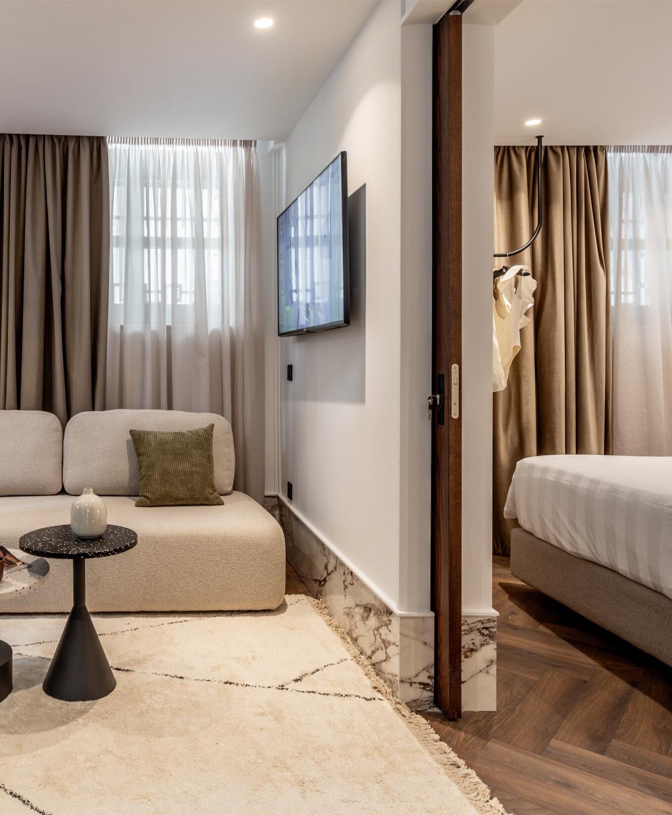 Οι επτά σουίτες του Rua Augusta που φέρουν τα ονόματα των πρώτων ξενοδοχείων που κάποτε κοσμούσαν αυτή την ιστορική οδό, αποτυπώνουν την ουσία του παρελθόντος του Ηρακλείου ενσωματώνοντας ιστορία και κομψότητα σε έναν χώρο με γήινους τόνους, όπου το παρελθόν συναντά τη σύγχρονη εμπειρία φιλοξενίας. Όλες οι σουίτες διαθέτουν king-size κρεβάτι και είναι πλήρως εξοπλισμένες με όλες τις σύγχρονες παροχές, όπως πλυντήριο και στεγνωτήριο, προσφέροντας άνεση και ευκολία σε κάθε επισκέπτη.