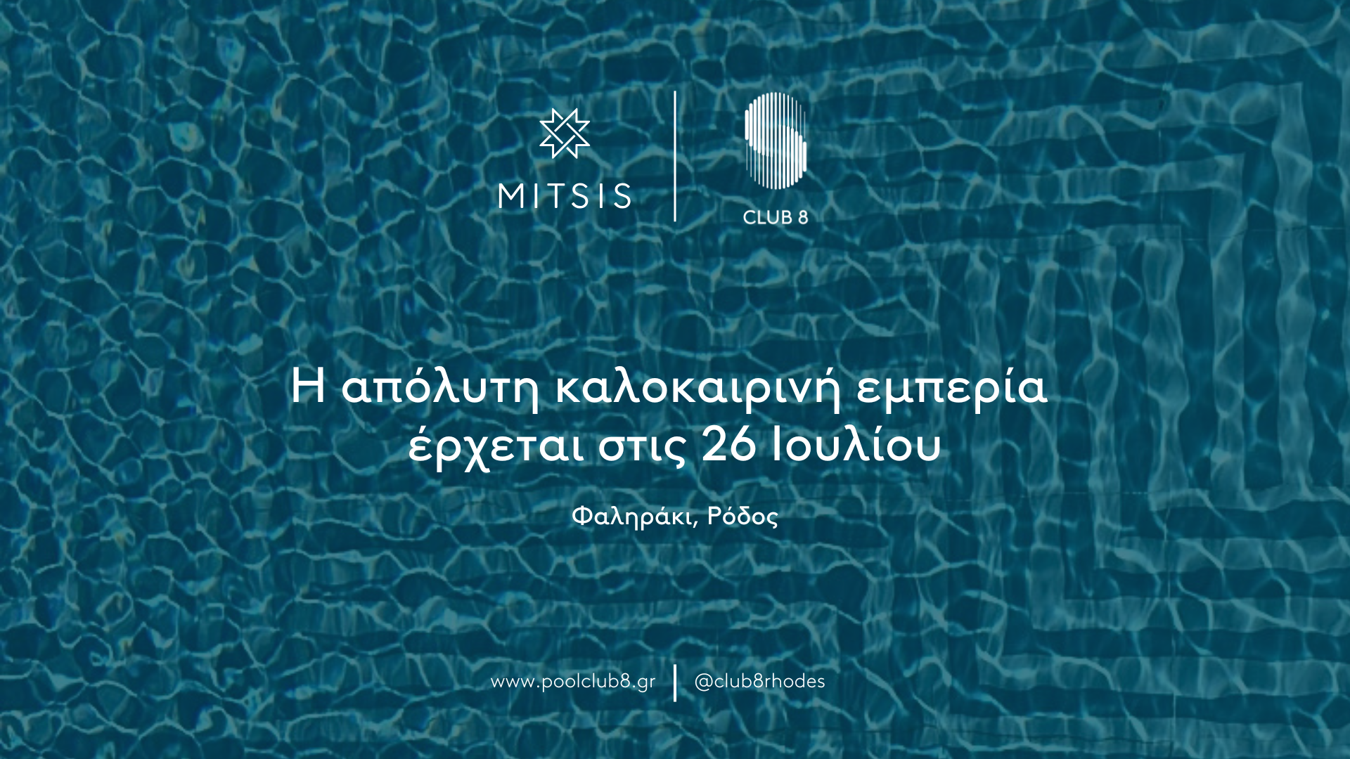 Το Club 8 Pool Club ανοίγει τις πόρτες του στις 26 Ιουλίου στο Φαληράκι, την πιο ζωντανή και κοσμοπολίτικη περιοχή της Ρόδου.