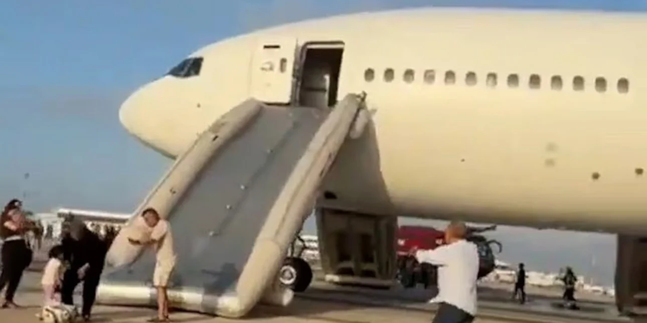 Οι επιβάτες απομακρύνθηκαν με τη χρήση τσουλήθρας έκτακτης ανάγκης, ενώ πολλοί έτρεξαν στον διάδρομο προσγείωσης.