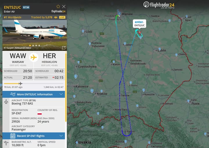 Αεροσκάφος μεγάλης ευρωπαϊκής αεροπορικής εταιρείας, που είχε απογειωθεί από τη Βαρσοβία με προορισμό το Ηράκλειο Κρήτης, πραγματοποίησε απρογραμμάτιστη επιστροφή στην Πολωνία.