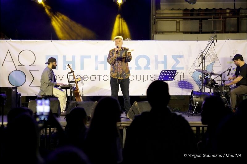 «Απόψε θα τραγουδήσουμε για τον Αώο, το υπέροχο ποτάμι που ενώνει τους λαούς!», έδωσε το σύνθημα ο καλλιτέχνης και όλοι ένωσαν τις φωνές τους μαζί του.