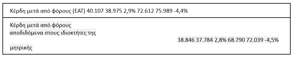 Το EBITDA διαμορφώθηκε στα €103,3 εκατ. για το τρίμηνο με αύξηση 4,4%, ενώ τα Κέρδη μετά από φόρους (ΕΑΤ) έφτασαν τα €40,1 εκατ. με αύξηση 2,9%.
