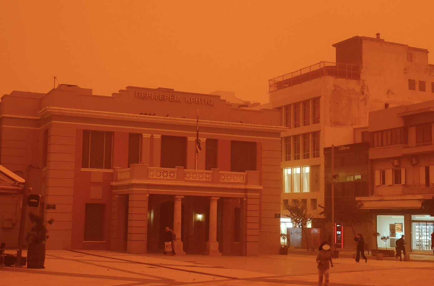 Ένα έντονο κύμα αφρικανικής σκόνης πλήττει την Κρήτη, με το Ηράκλειο να βρίσκεται στο επίκεντρο του φαινομένου.