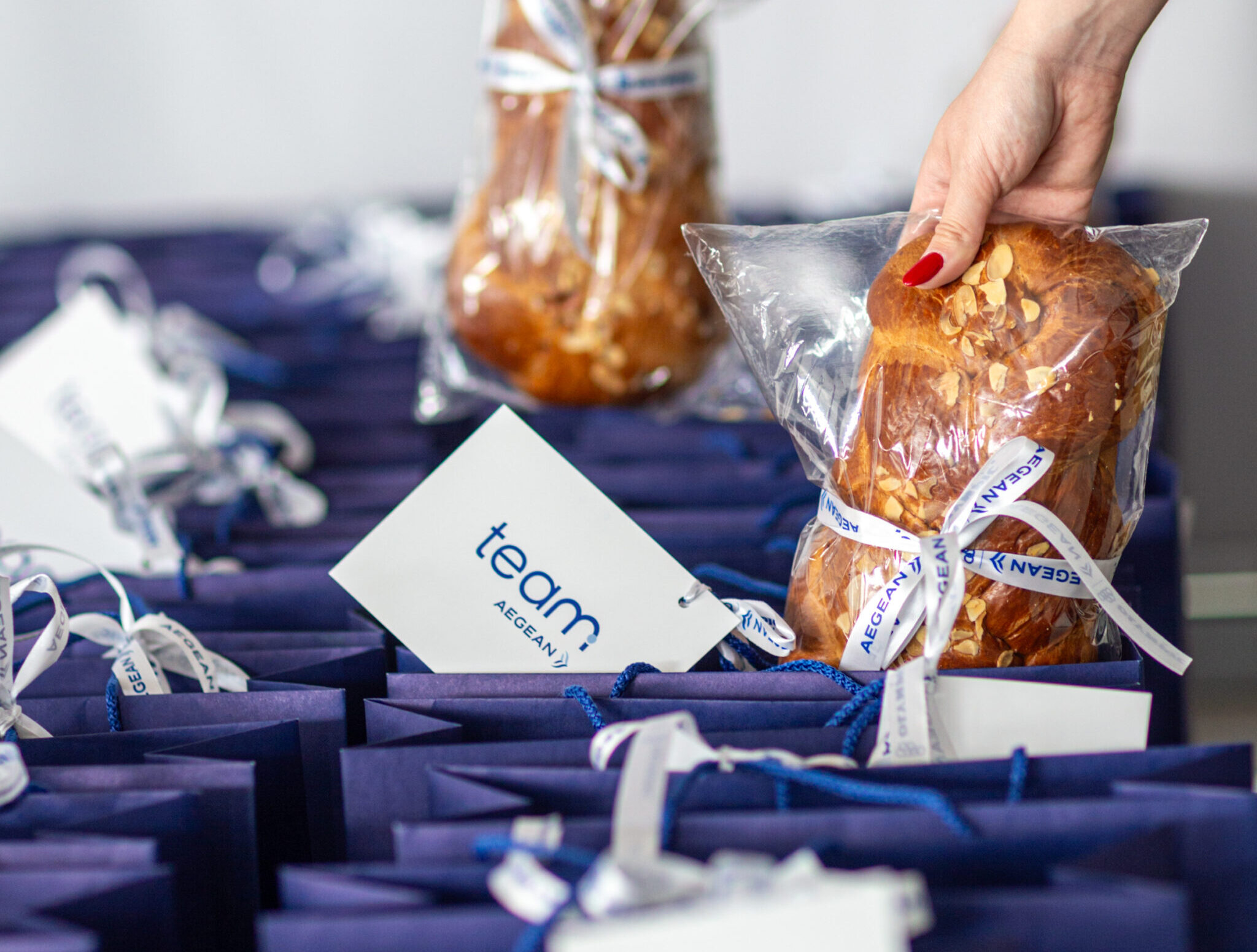 Για ακόμη μία φορά, καθοριστική για την επιτυχία της δράσης ήταν η συμμετοχή της εθελοντικής ομάδας εργαζομένων “team AEGEAN”, που με αστείρευτο ενθουσιασμό αγκάλιασε και αυτή την πρωτοβουλία. Εθελοντές εργαζόμενοι της εταιρείας συγκεντρώθηκαν μία ημέρα πριν την εκδήλωση και σε κλίμα ενθουσιασμού και συνεργασίας προετοίμασαν και συσκεύασαν πασχαλινά εδέσματα με ευχετήριες κάρτες για το Πάσχα και την Ανάσταση για όλους τους προσκεκλημένους, στέλνοντας ένα μήνυμα αγάπης και φροντίδας, ενώ την ημέρα της μουσικής παράστασης φρόντισαν με προσοχή και χαμόγελο κάθε συμμετέχοντα, δημιουργώντας μια ζεστή και αξέχαστη εμπειρία γεμάτη συγκίνηση, χαρά και αίσθημα προσφοράς.