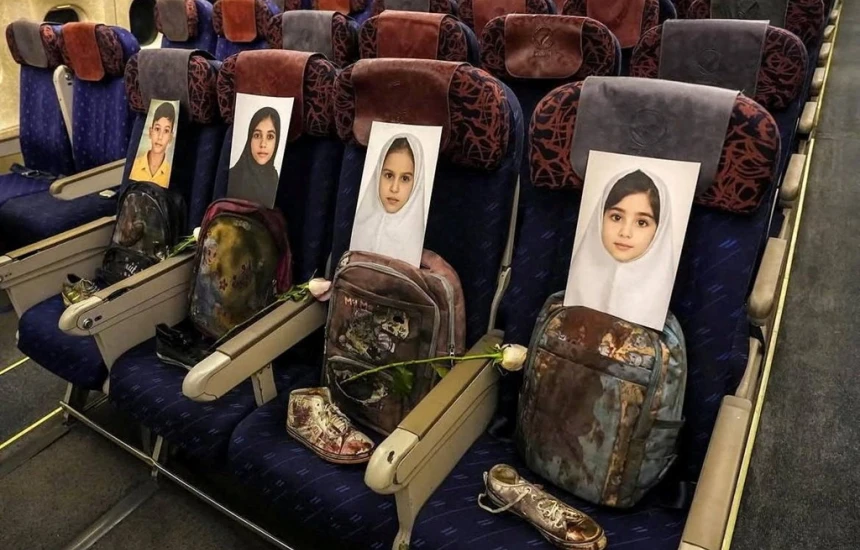 Κατά την επιβίβαση, ο πρόεδρος του Κοινοβουλίου, Μοχάμεντ Μπακέρ Καλιμπάφ, μοιράστηκε φωτογραφικό στιγμιότυπο από την καμπίνα του αεροσκάφους, στο οποίο διακρίνονται σε σειρά καθισμάτων εικόνες τεσσάρων παιδιών που σκοτώθηκαν στο ιρανικό σχολείο.