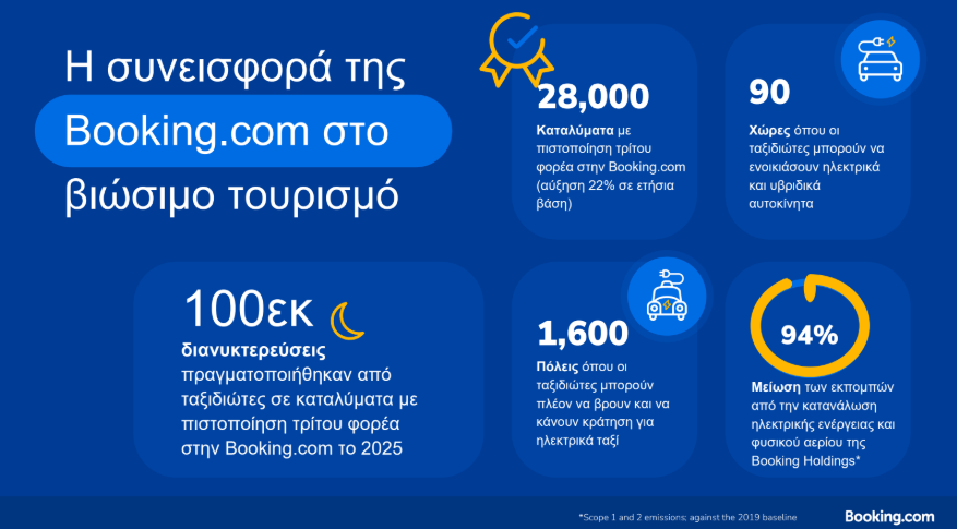 Η Danielle D’Silva, Διευθύντρια Βιωσιμότητας της Booking.com δηλώνει: «Η φετινή Έκθεση για τα Ταξίδια και τη Βιωσιμότητα δείχνει ότι, μπορεί οι διαφορετικές γενιές να έχουν διαφορετική αντίληψη για το τι συνιστά πιο βιώσιμο ταξίδι, ωστόσο η προσαρμογή στις ακραίες καιρικές συνθήκες και η ενεργή αποφυγή των συνωστισμών αποτελούν πλέον κανόνα σε όλες τις ηλικίες. Είναι ενθαρρυντικό να βλέπουμε ένα ευρύ φάσμα τρόπων με τους οποίους οι ταξιδιώτες ήδη ταξιδεύουν με πιο βιώσιμο τρόπο, καθώς και την πρόθεσή τους να συνεχίσουν σε αυτή την κατεύθυνση. Είτε αφορά στα 100 εκατομμύρια διανυκτερεύσεις που έκλεισαν οι ταξιδιώτες το 2025 σε συνεργαζόμενα καταλύματα με πιστοποίηση βιωσιμότητας από τρίτο φορέα στην πλατφόρμα μας είτε στη χρήση των μέσων μαζικής μεταφοράς ή στην ενοικίαση ηλεκτρικού οχήματος για τις μετακινήσεις τους κατά τη διάρκεια των ταξιδιών τους είτε την επιλογή πιο δροσερών και πιο ήσυχων προορισμών. Ως παγκόσμιος ηγέτης στον τομέα των ταξιδιών, θέλουμε να διευκολύνουμε τόσο τους ταξιδιώτες όσο και τους συνεργάτες μας να συνεχίσουν να λαμβάνουν αυτές τις πιο βιώσιμες επιλογές, ούτως ώστε όλοι να μπορούν να συνεχίσουν να απολαμβάνουν τα οφέλη που προσφέρουν τα ταξίδια και να συνεχίσουν οι προορισμοί να παραμένουν ευχάριστοι τόσο από τους επισκέπτες όσο και από τους κατοίκους».